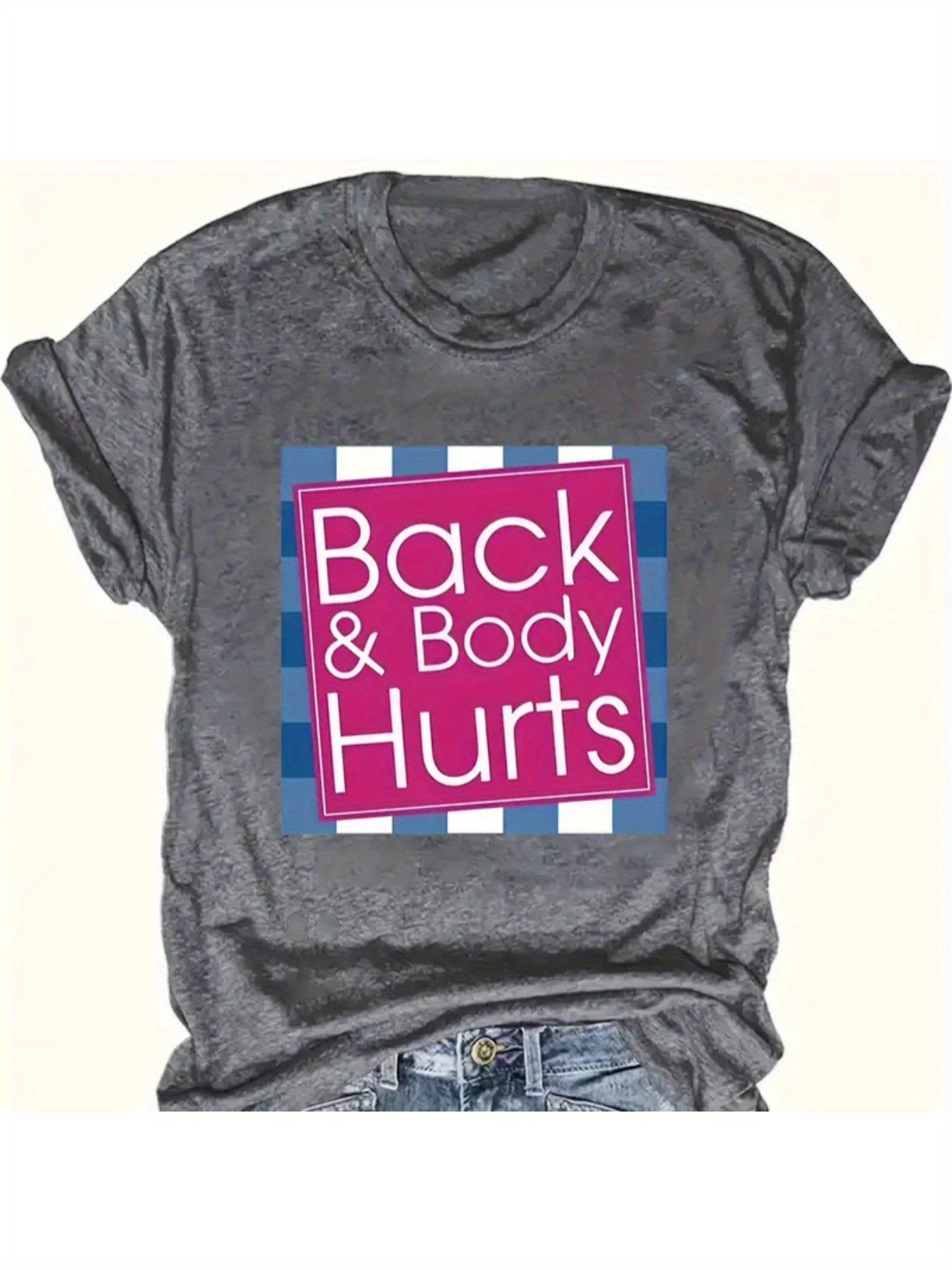 Crew Neck T-Shirt - Fashionable Womens "BACK & BODY HURTS" Graphic Print T-Shirt - Casual Short Sleeve Crew Neck Top - Lightweight & Breathable for Spring & Summer Wardrobe