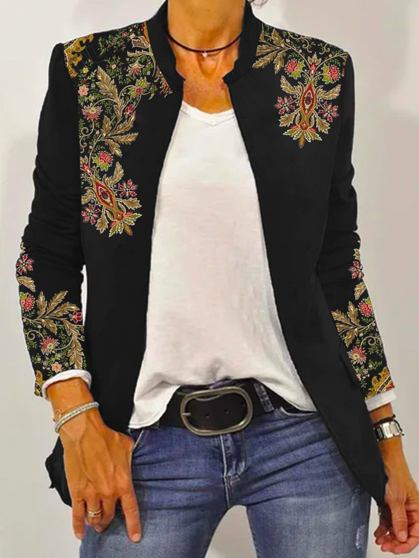 Plus Size - Plus-Size Women'S Paisley Print Jacket - Winter Warmth Button-Free Coat with Round Neck, Multicolor (Green/Red) | Boho-Chic Casual & Semi-Formal Outerwear | Cozy Fall/Winter Jacket for Women | Versatile Layering Piece for Jeans & Dresses