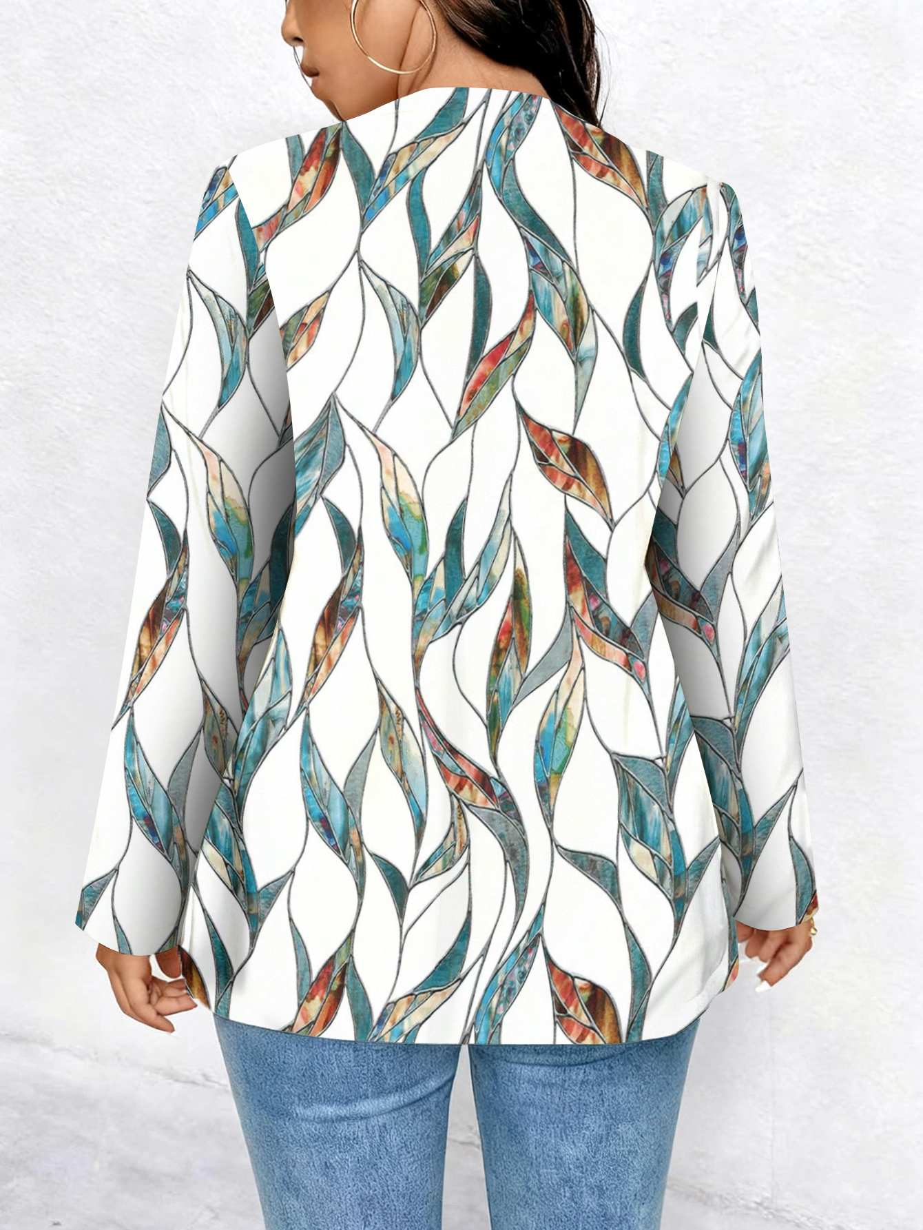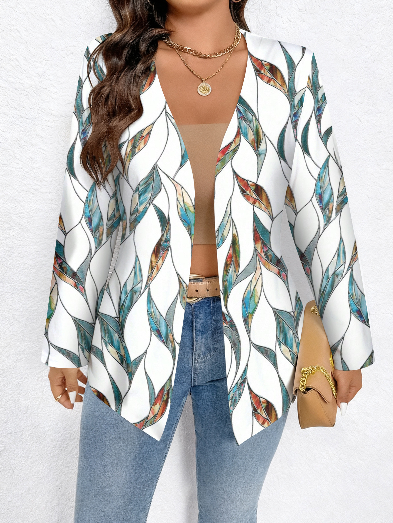 Plus Size, Plus Size Women's Elegant Full-Body Print Oversized Cardigan Coat - Winter Warm Long Sleeve Jacket with Collar, Machine Washable All-Over Pattern (No) for Casual, Office, Party - Plus Size Clothing (Curvy & Tall Friendly)