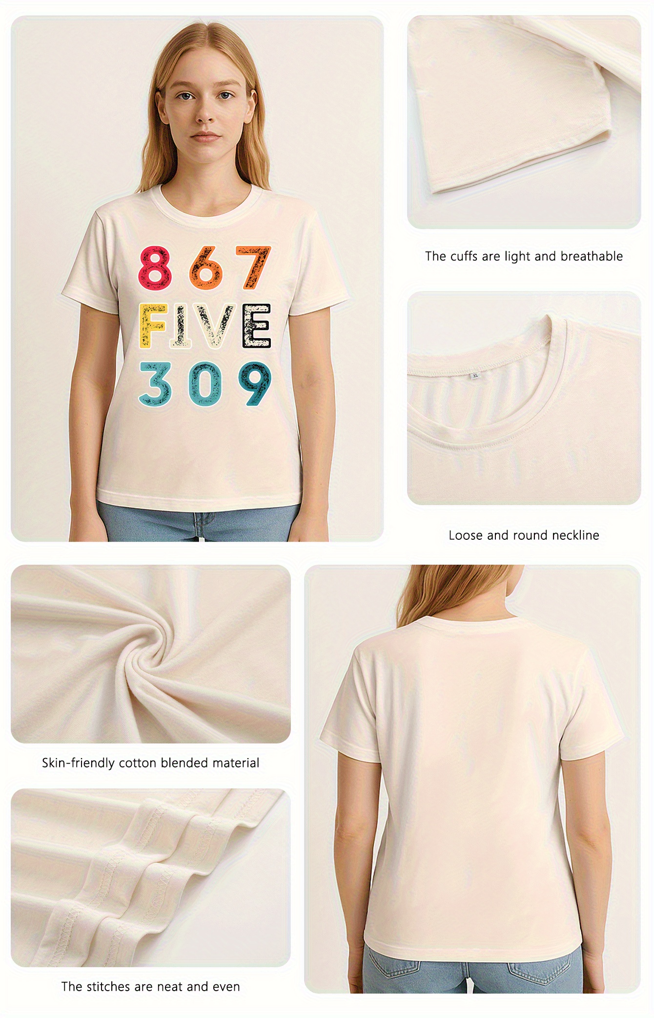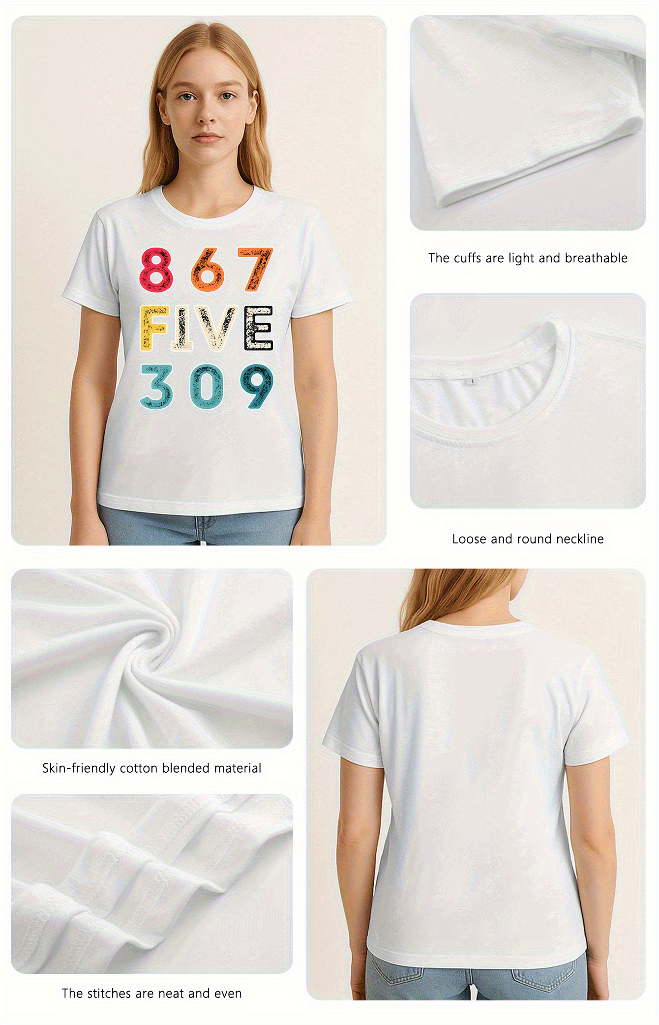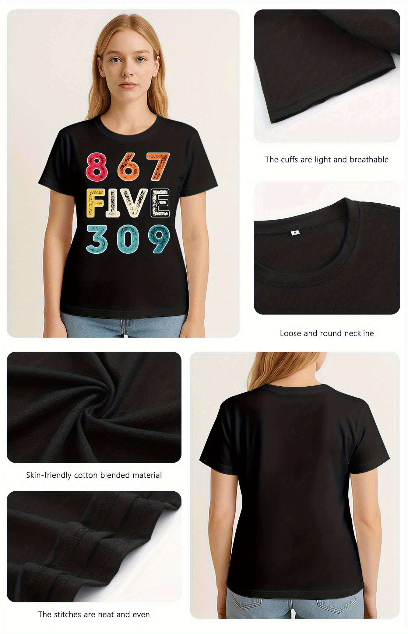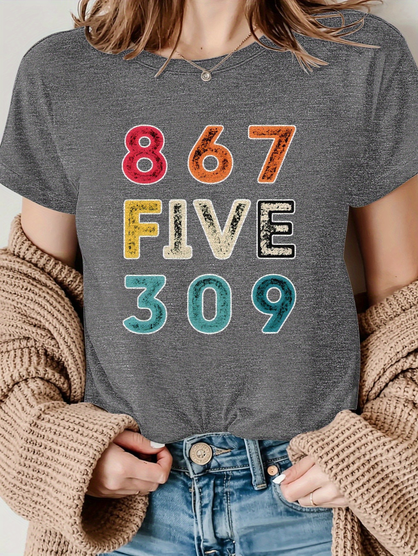 [Vibrant Graphic Tee] Vibrant Purple Women's Casual Short-Sleeve T-Shirt with Bold 867 FIVE 309 Graphic Print | Round Neck Top, Sporty Comfort Fit, Machine Washable Spring Summer Tee, Ladies T Shirts, Casual Attire, Soft Fabric