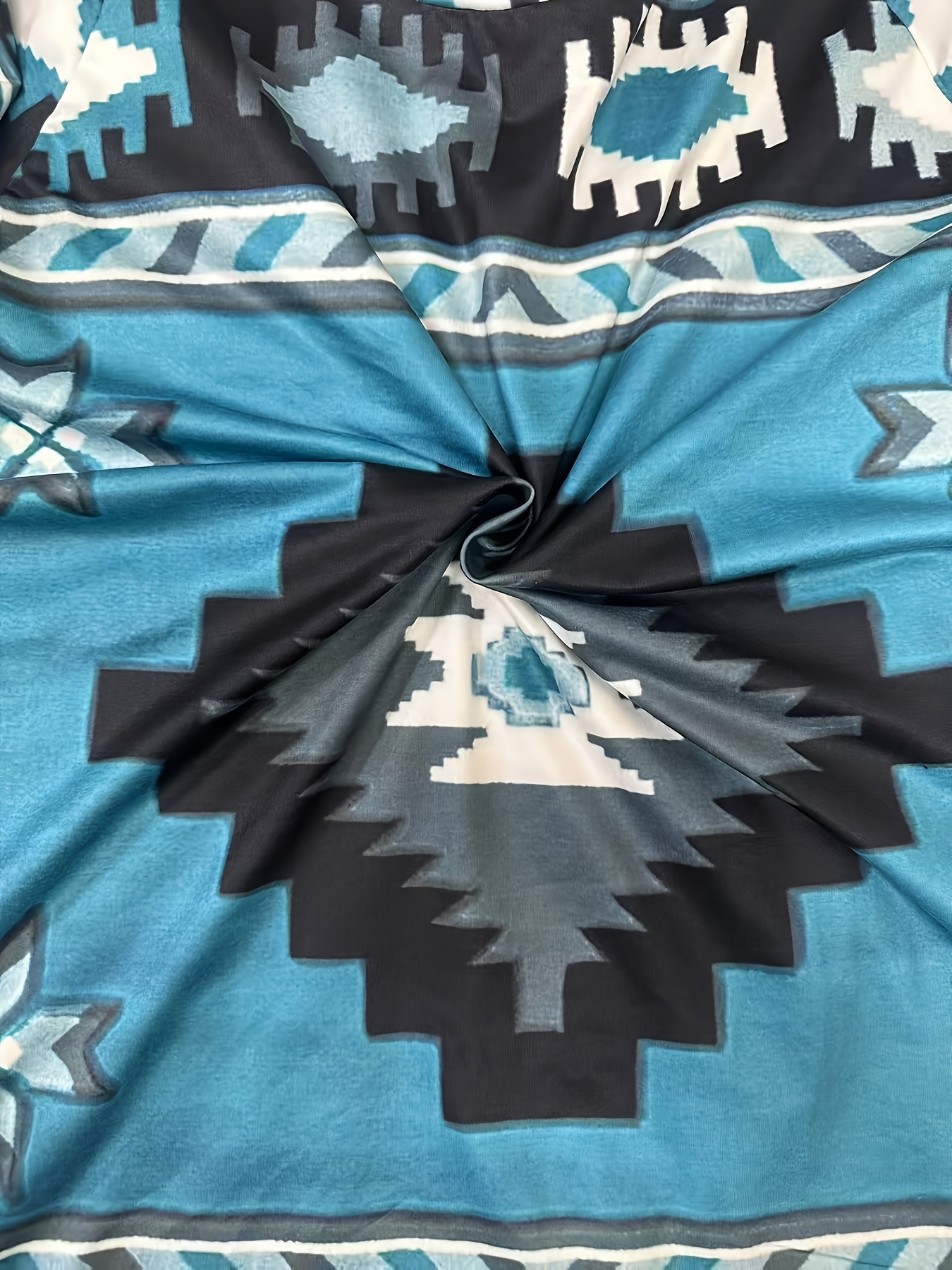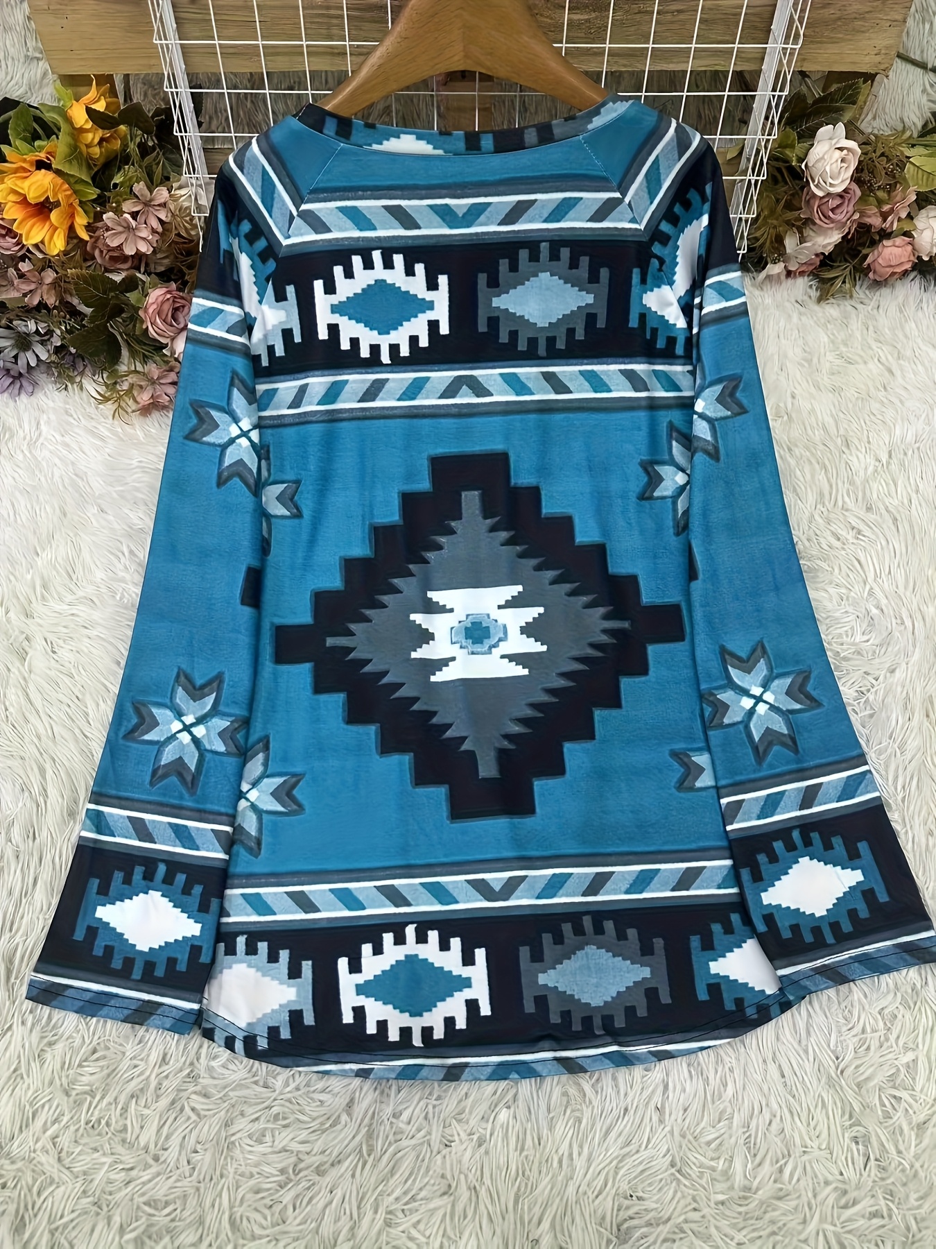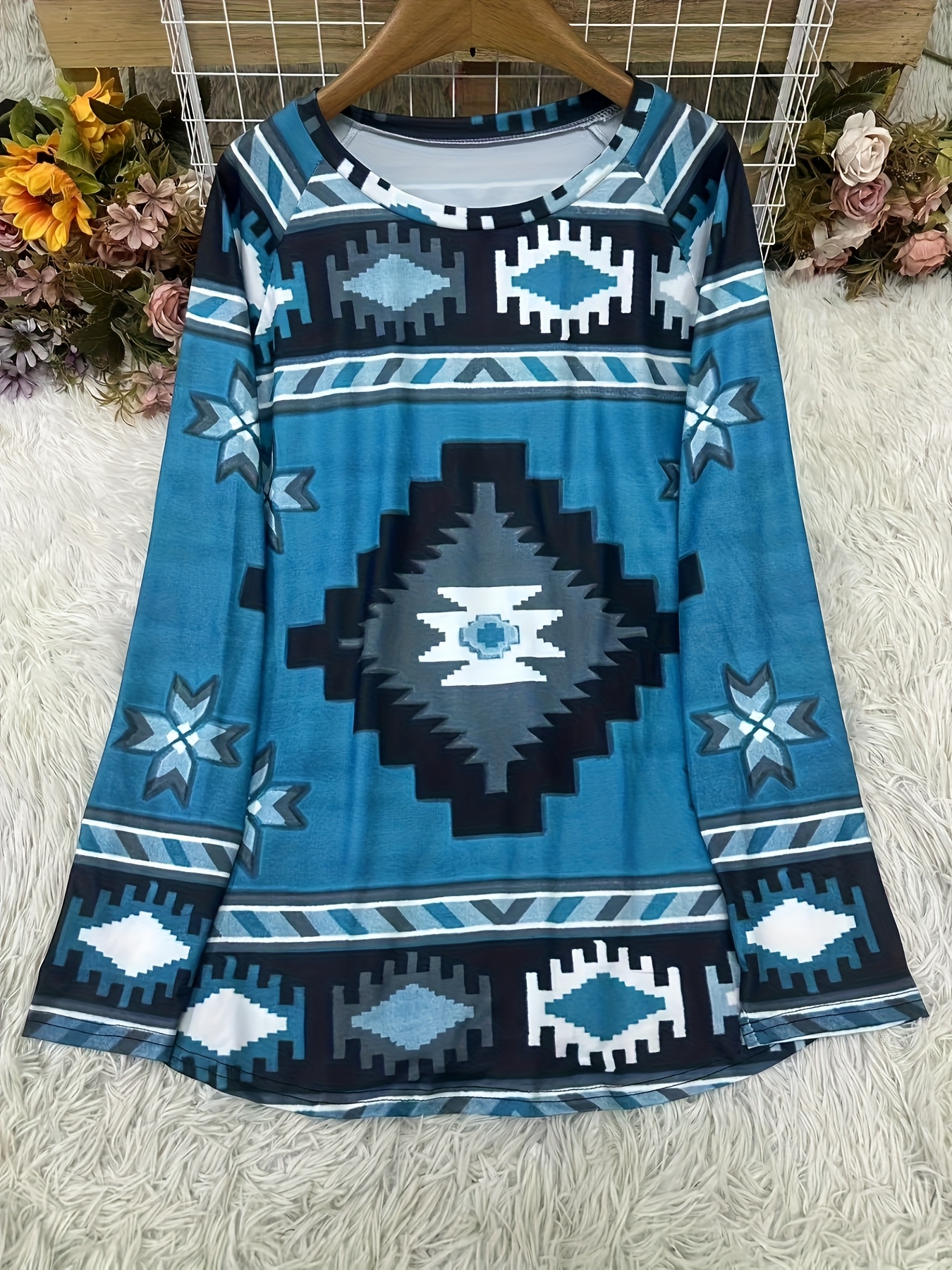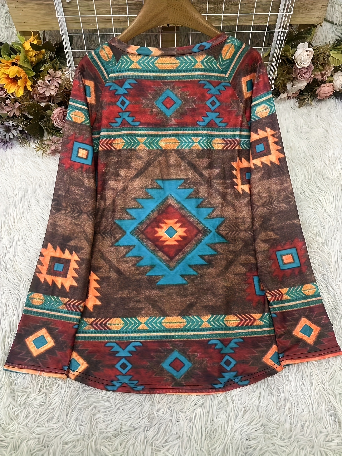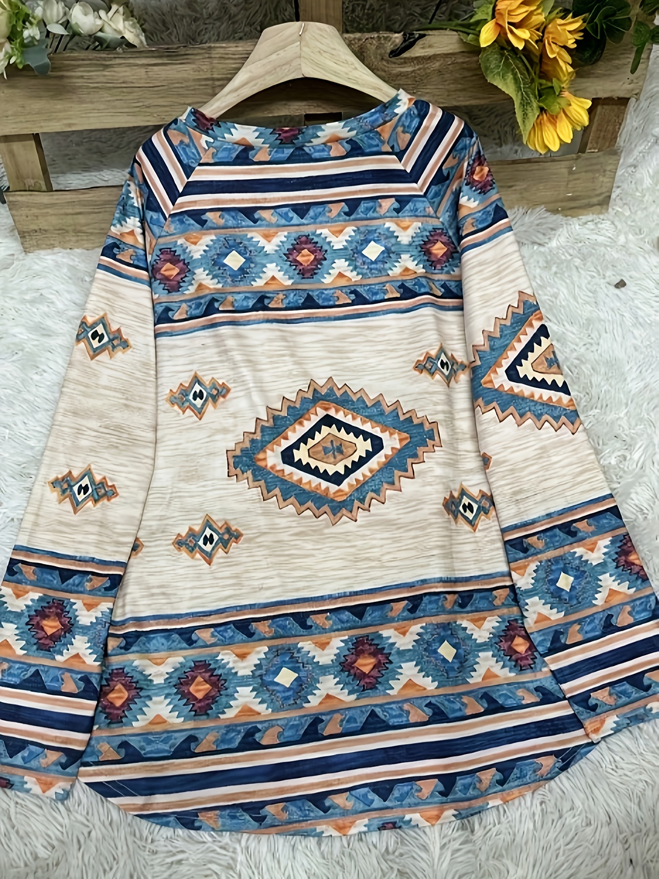 Women'S Southwest-Style Geometric Print Long-Sleeve Top - Elastic V-Neck Casual Shirt, Machine Washable Translucent Fabric with Turquoise/Orange/Black/Beige/White/Gray Patterns, Resort Wear & Everyday Elegant Blouse for Fall Winter Layering, Southwestern Bohemian Style Clothing, Regular Fit with Intricate Geometric Design, Stretchy Material for Comfort, Spring/Summer Wear, Pullover Style with Long Sleeves, Women Top And Blouse, V Neck T Shirt For Women, Fall Shirt For Women, White Top