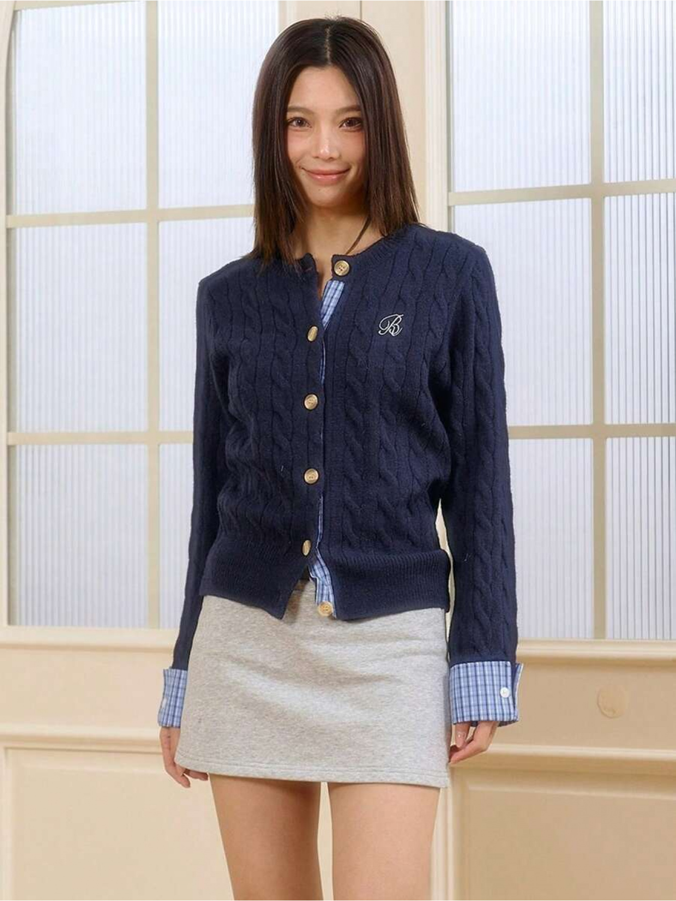 Women's Winter Cardigan Sweater - Off-Shoulder/Boat Neck Collegiate Style Color Block Plaid Patchwork Jacket, Machine Washable Patchwork Sweaters for Layering (Autumn/Winter)