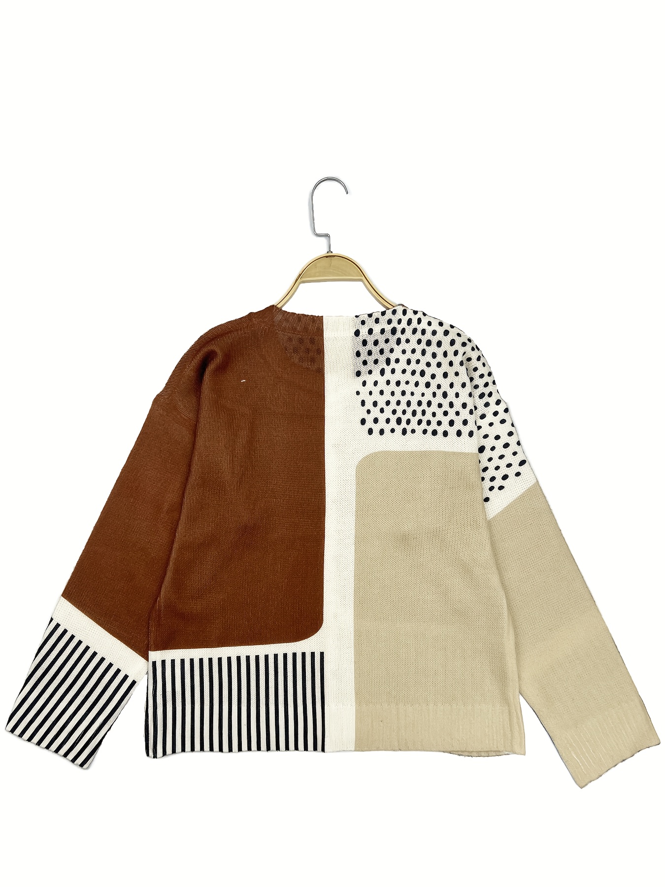 Plus-Size Women's Lightweight Cardigan - Spring/Autumn Open Front Sweater with Digital Print (Brown/White/Beige/Patterned), Round Neck Long Sleeve Button Front for Casual & Resort Wear, Cardigan Sweater, Spring Outerwear, Trendy Knitwear, Cozy Feel Fabric