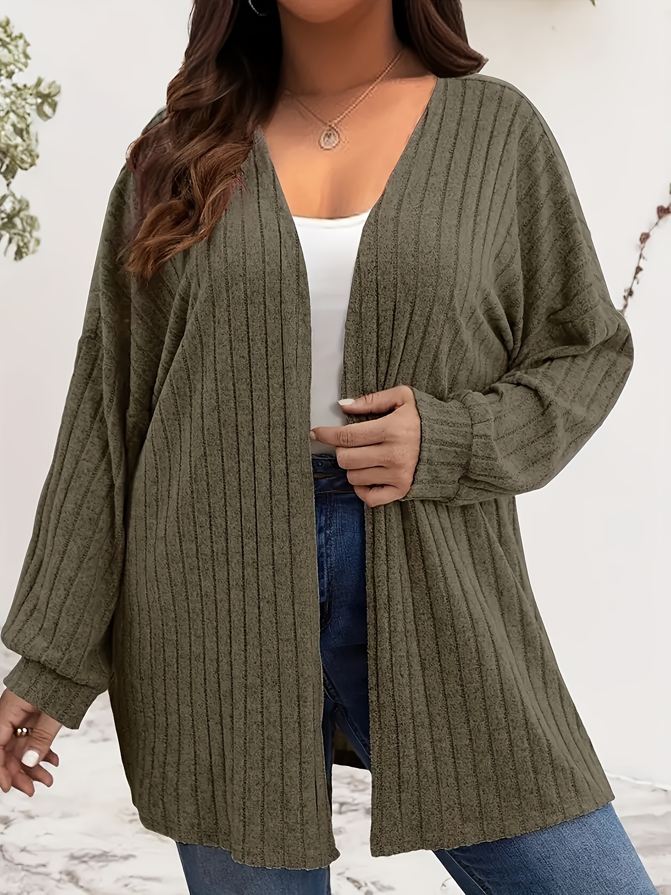 [Elegant Long Sleeve Cardigan] Plus Size - Women's Plus Size Elegant Long Sleeve Cardigan - Cozy Ribbed Open Front Sweater with Button Details, Solid Color, Medium Stretch, Perfect for Fall/Winter Casual Wear, Casual Wear Cardigan | Elegant Long Sleeve | Construction, Sweater Cardigan, Plus Size Women Clothes, Plus Size, Plus Size Women Top, Cardigan For Curvy/large Size Women, Sweater For Curvy Women, Elegant Cardigan For Women, Cardigan For Women On
