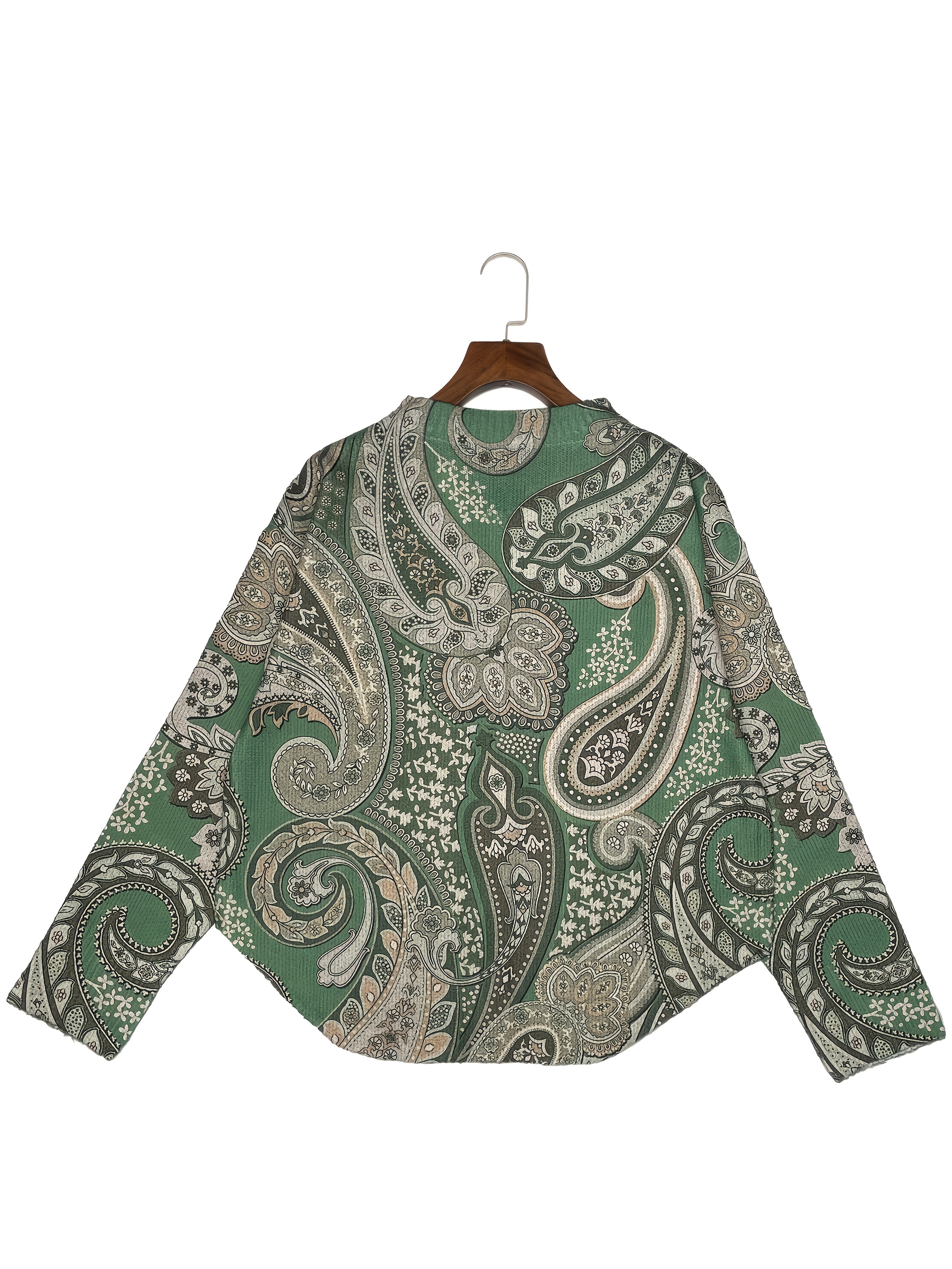 Plus Size - Elegant 2D Printed Geometric Pattern Cardigan - Cozy Fall/Winter Sweater with Button Details, Stretchy Fabric, Long Sleeve, Round Neck, Autumn Winter Apparel | Stylish Cardigan | Constructi
