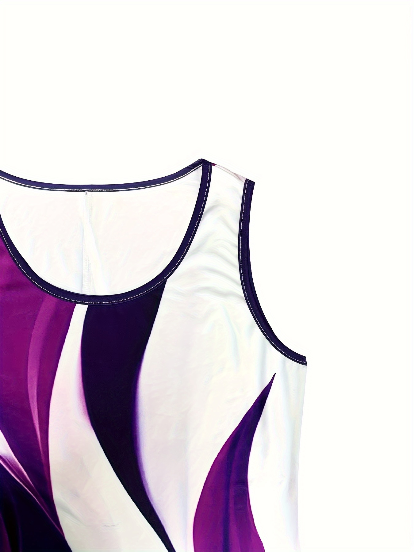 Summer New Arrival Women'S Resort-Style Color-Block Stripe Print Tank Dress- Purple/ White/ Black Round Neck Sleeveless, Lightweight Breathable Machine-Washable for Beach Vacations, Casual Outings& Weekend Getaways, Summer Tank Tops